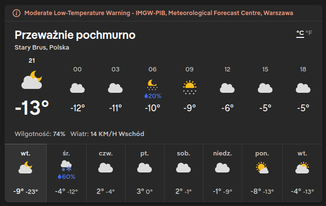 U mnie już koniec bardzo srogich mrozów (poprzedniej nocy -24), nadchodzi zwykły, zimowy mrozik. I opady śniegu 🌨️