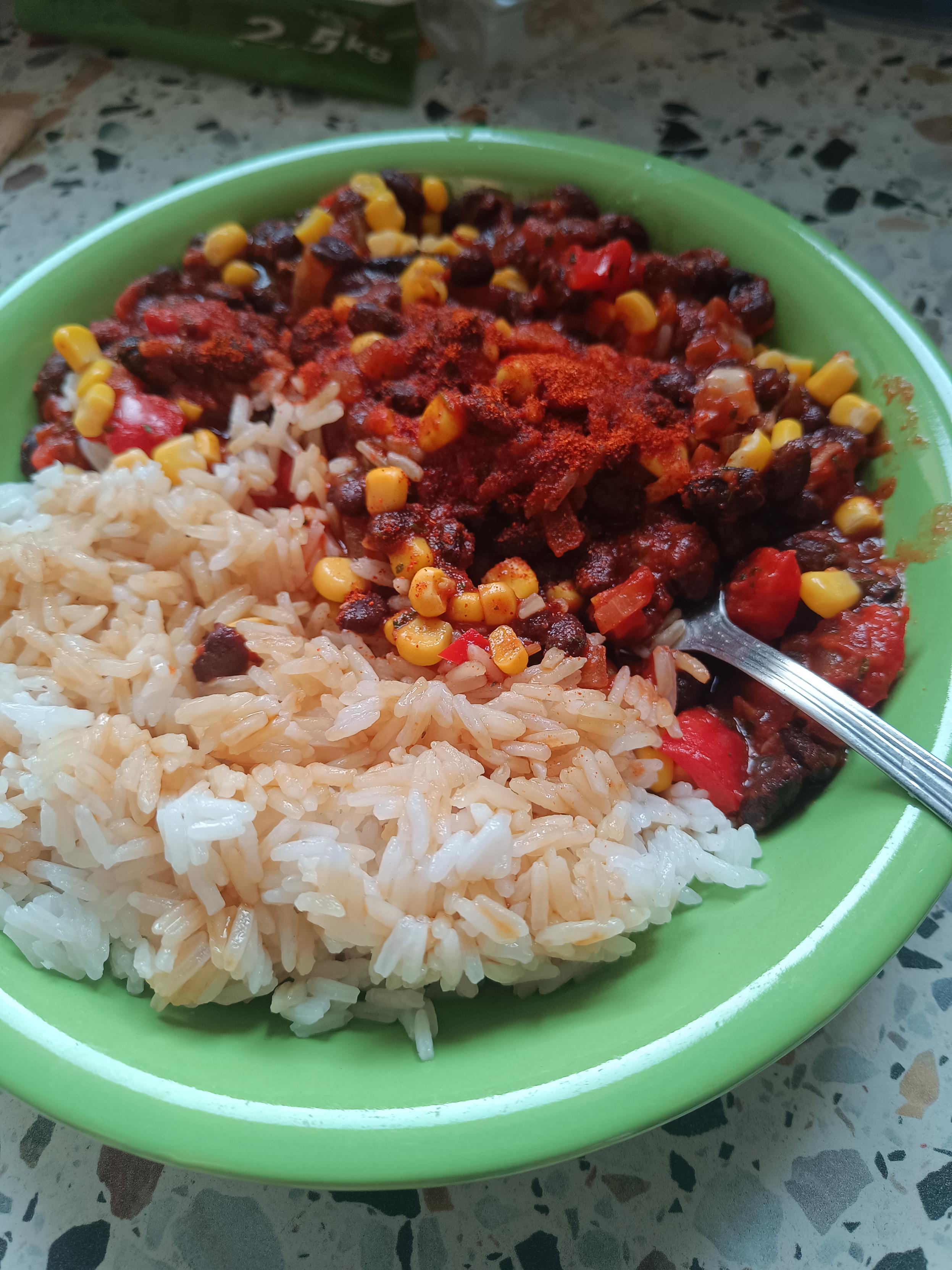 dzisiaj fasolka z ryżem najpierw schłodzonym, a później podgrzanym