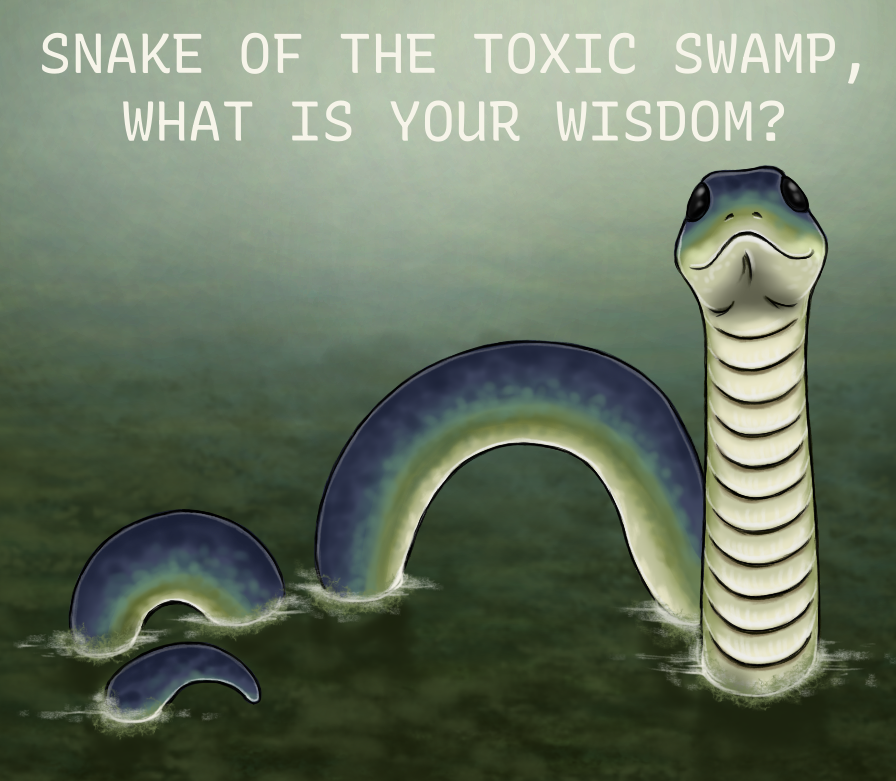 This one is inspired by absolutely casual #snake photo I see here, snake in similar colour to this, with head pointing up. But I wanted to make it somehow similar to giant stone snake statue in my background photo... but it's body couldn't go through soil, right? So it should be in water... or swamp... well...