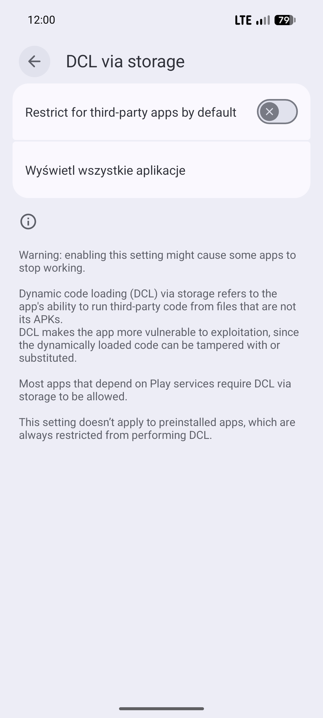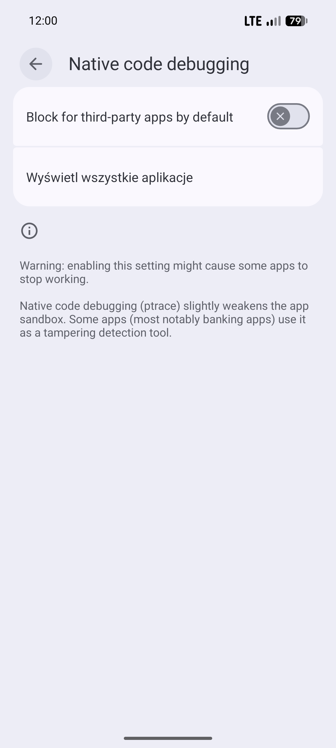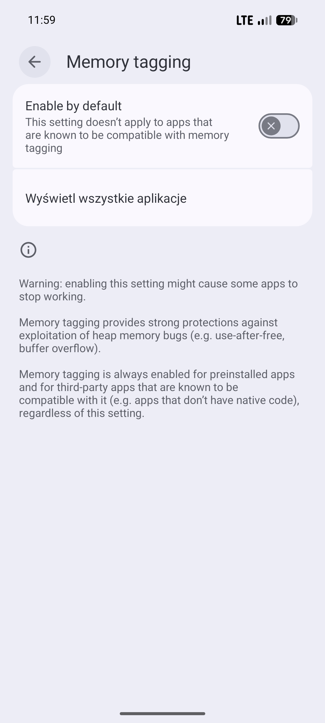Przez cały okres użytkowania przeze mnie GrapheneOS rzuciło się w oczy kilka mniej istotnych niedoskonałości wymienionego systemu. Do tych najbardziej widocznych należy brak tłumaczenia modyfikacji od GrapheneOS względem czystego AOSP. Widać to chociażby na umieszczonych wcześniej zrzutach ekranu. Twórcy tłumaczą się tym, że (mimo chętnych do tłumaczenia elementów interfejsu) tłumaczenie musi być wykonane profesjonalnie, a w tej chwili znajduje się to na dole listy z priorytetami. Jak dla mnie jest to trochę dziwne tłumacznie, gdyż po ich stronie leży tylko wyrażenie na to zgody. Z drugiej strony dzięki temu możemy łatwo wychwycić wszystkie modyfikacje od GrapheneOS, gdyż żadna z nich nie została przetłumaczona 😉