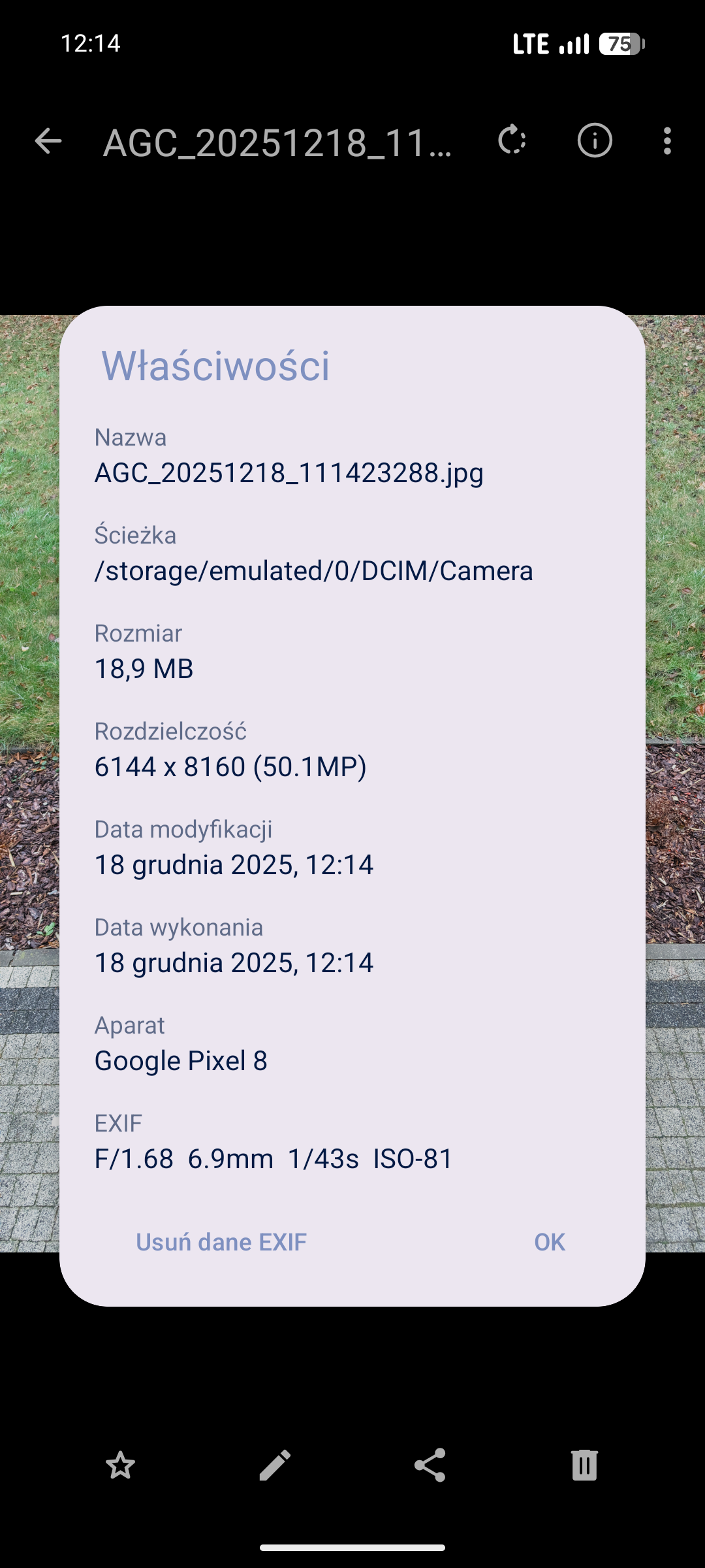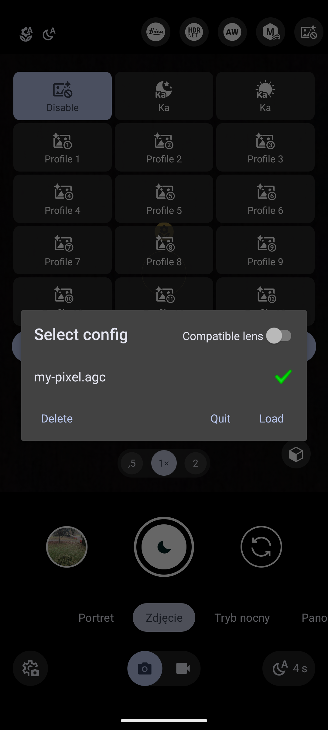 W tej sytuacji z pomocą przychodzi nam mod Gcam. Jest to zmodyfikowana wersja aplikacja aparatu od Google nie wymagająca usług Google ani aplikacji Zdjęcia Google. Jeśli także posiadacie model Pixel 8, to umieszczam bezpośrednie linki do odpowiedniej wersji aplikacji Gcam oraz pliku konfiguracyjnego. Po zainstalowaniu aplikacji pobieramy plik konfiguracyjny i wrzucamy go do katalogu /Download/AGC.9.2/configs/. Otwieramy aplikację aparatu i wczytujemy plik konfiguracyjny (ikona w prawym górnym rogu -> Load config). Od tej pory mamy dostęp do wszystkich obiektywów oraz odblokowujemy pełną rozdzielczość 50Mpix. Pozostanie nam już tylko wejście w ustawienia -> zaawansowane i odhaczenie Use Google Photos